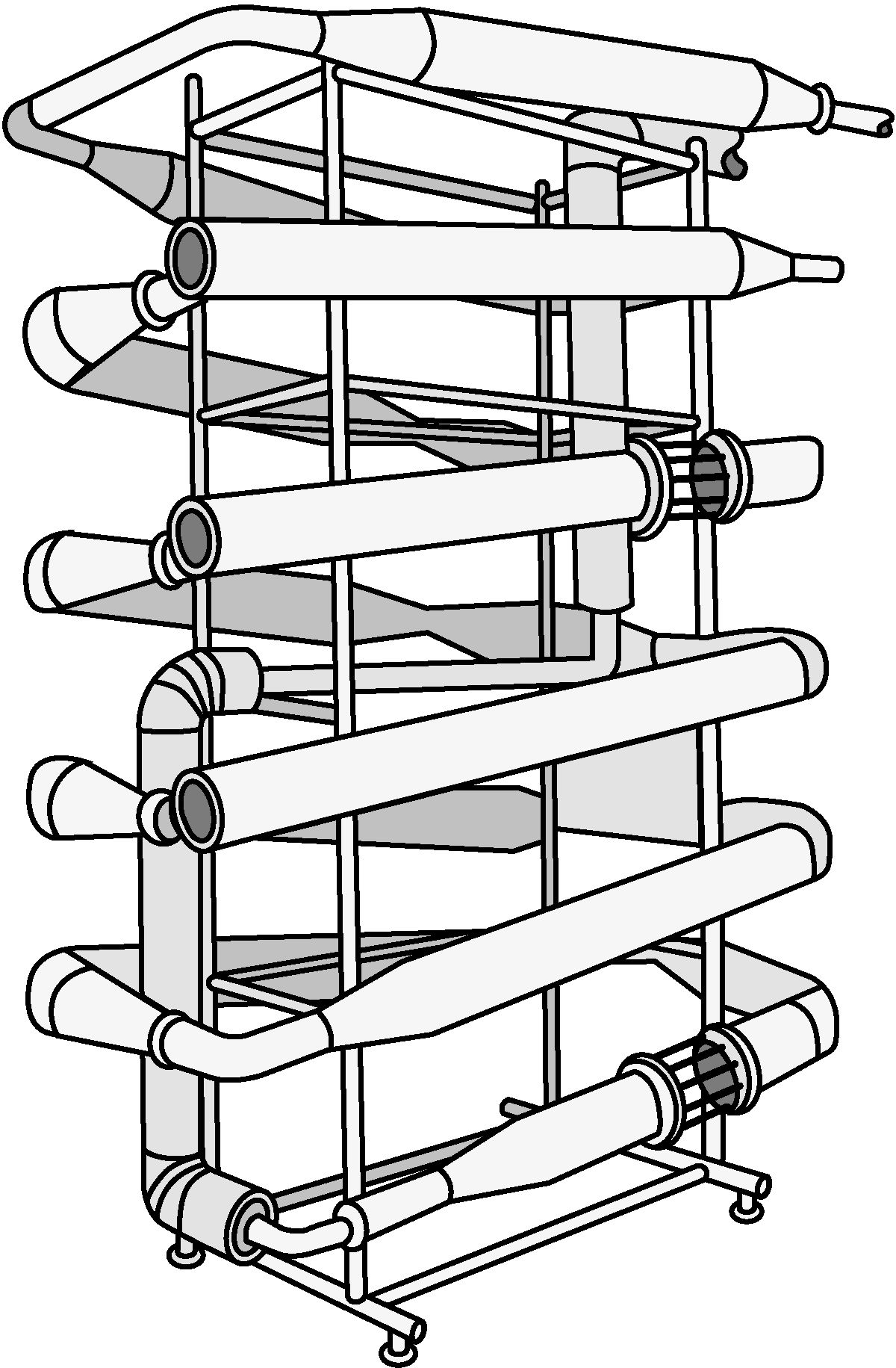 Thermisation means moderate heat treatment at 65 °C for 15 seconds, followed by cooling to +4 °C, after which the milk is still phosphatase positive. This technique was mainly introduced to arrest the growth of psychrotrophic flora when milk was stored for a further 12 – 48 hours after arrival at the dairy. The “critical age” of raw milk kept at +4 °C normally falls between 48 and 72 hours after milking. Figure 16.2 shows the arrangement of a milk reception station.