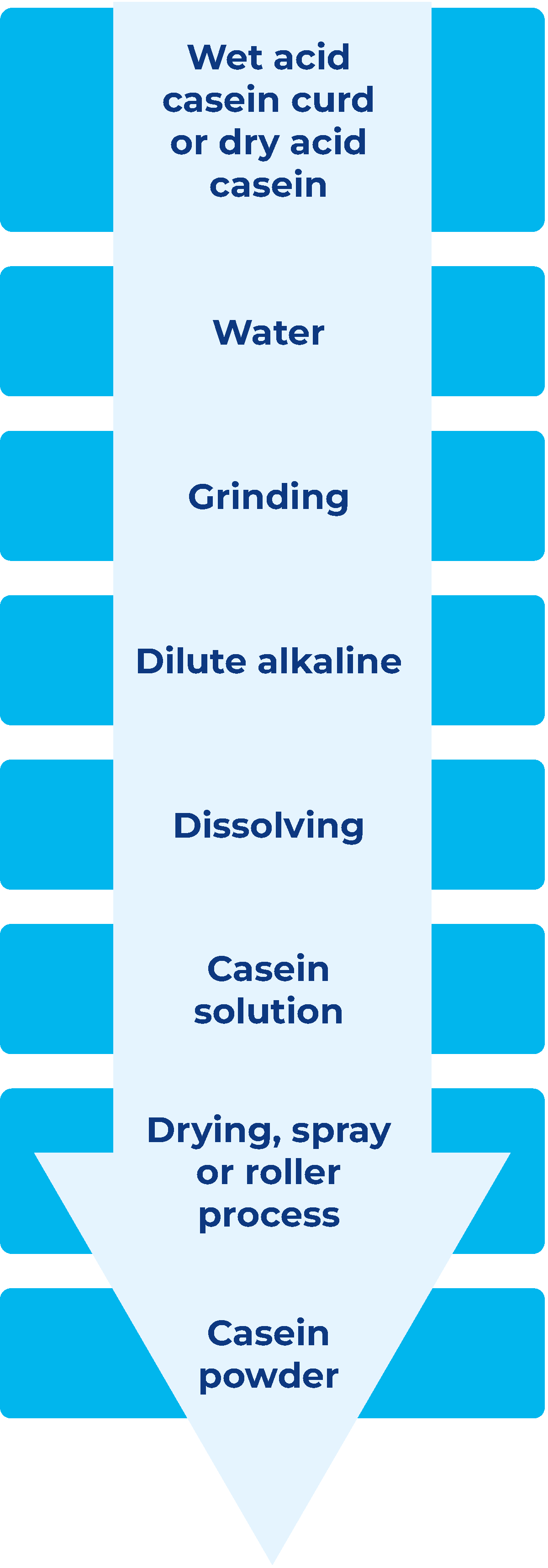 - Acid casein, obtained by acidifying skim milk to the isoelectric point (pH 4.6 – 4.7)