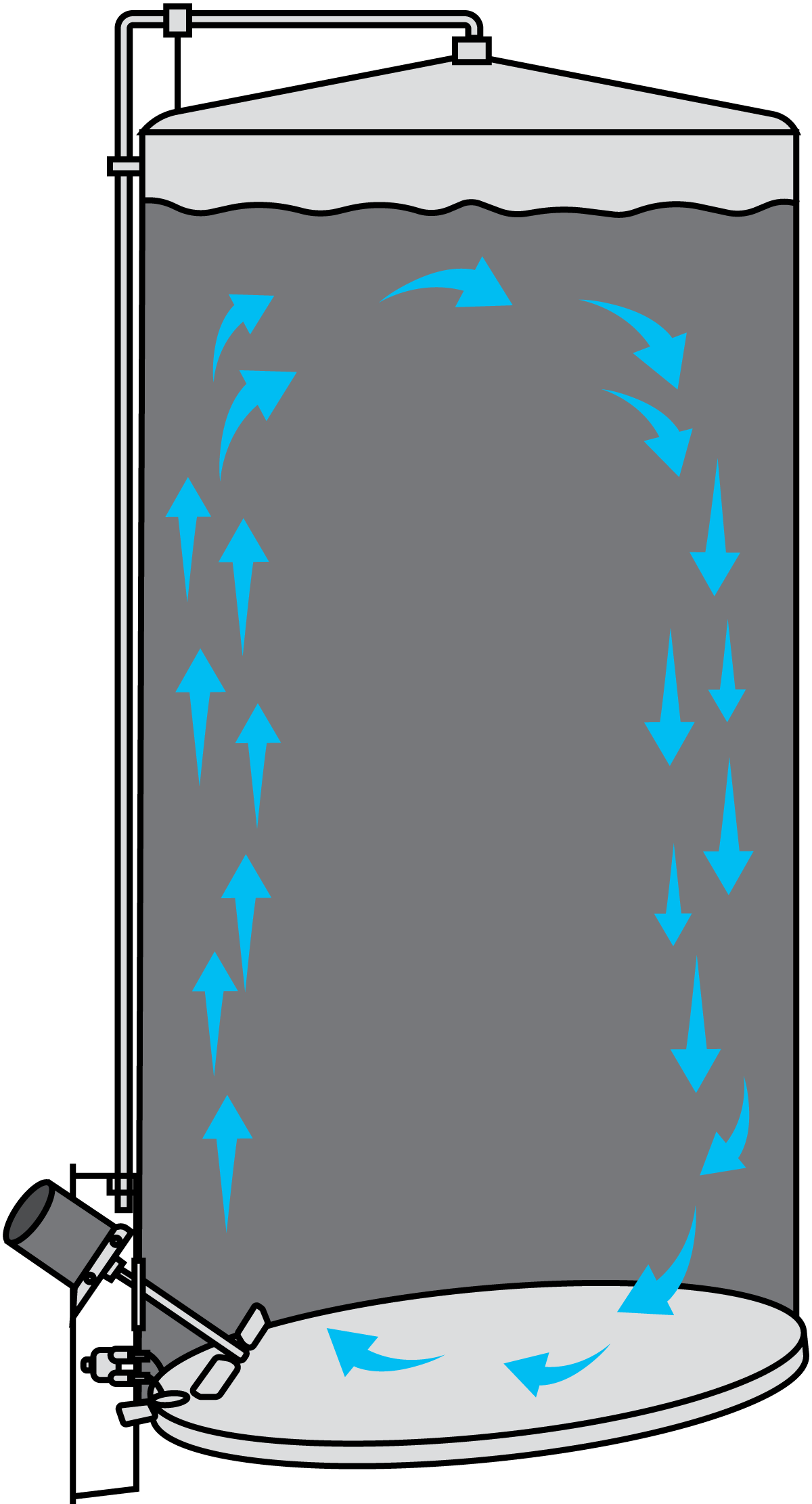 Raw milk silos must have an arrangement for agitation to prevent cream separation due to gravity. The agitation must be gentle. Too harsh agitation can cause air intrusion. It can also damage the fat globules, exposing the fat to attacks from the lipase enzymes present in raw milk. The tank in Figure 6.9 has a side-mounted propeller agitator, often used with good results in silo tanks. In very high tanks it may be necessary to fit two agitators at different levels to obtain the required effect. Agitators in raw milk silos are operated intermittently, i.e. running for a few minutes and then turned off for a few minutes.