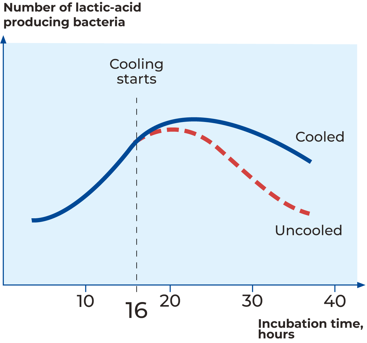 Cooling to 10 – 12 °C is often practised when the culture is going to be used within the next six hours. If the culture needs to be stored for an extended period, (more than six hours), it is advisable to cool it to about 5 °C.