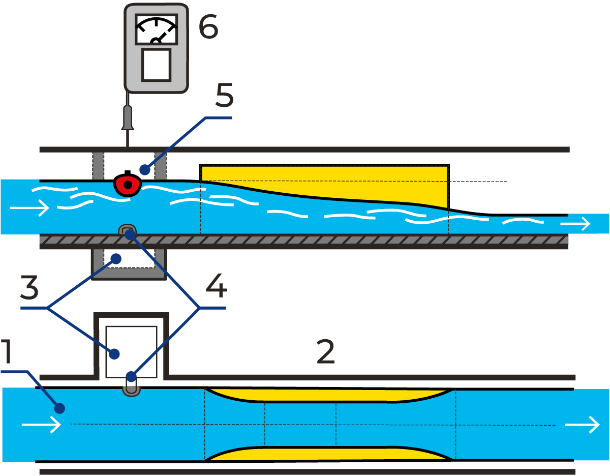Figure 23.1 illustrates a system for measuring the flow in an open canal with a venturi flume. For information about the venturi flume and other measuring systems, please contact the municipal authorities dealing with sewage water treatment. As for sampling, one example of the procedure is shown in Figure 23.2.