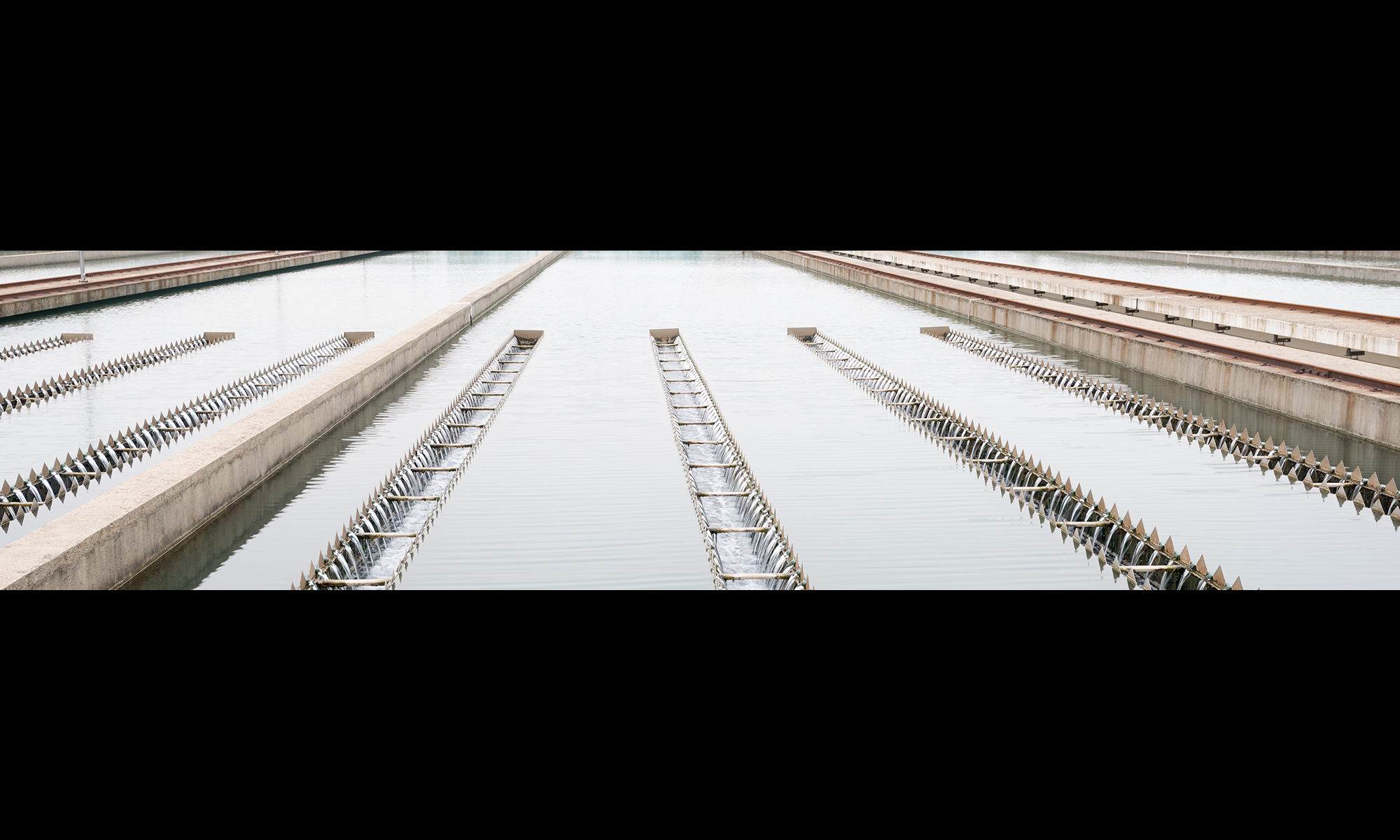 The sedimentation basins are equipped with devices that continuously scrape the sediment into a sump and transverse gutters that carry off water from the clarified surface layer.