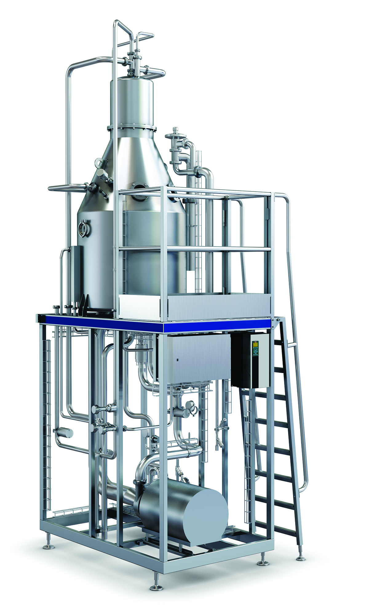 For the production of yoghurt, the vacuum vessel is not provided with a condenser, as milk intended for yoghurt is often also slightly (15 – 20%) concentrated. Condensation of vapour is arranged separately.