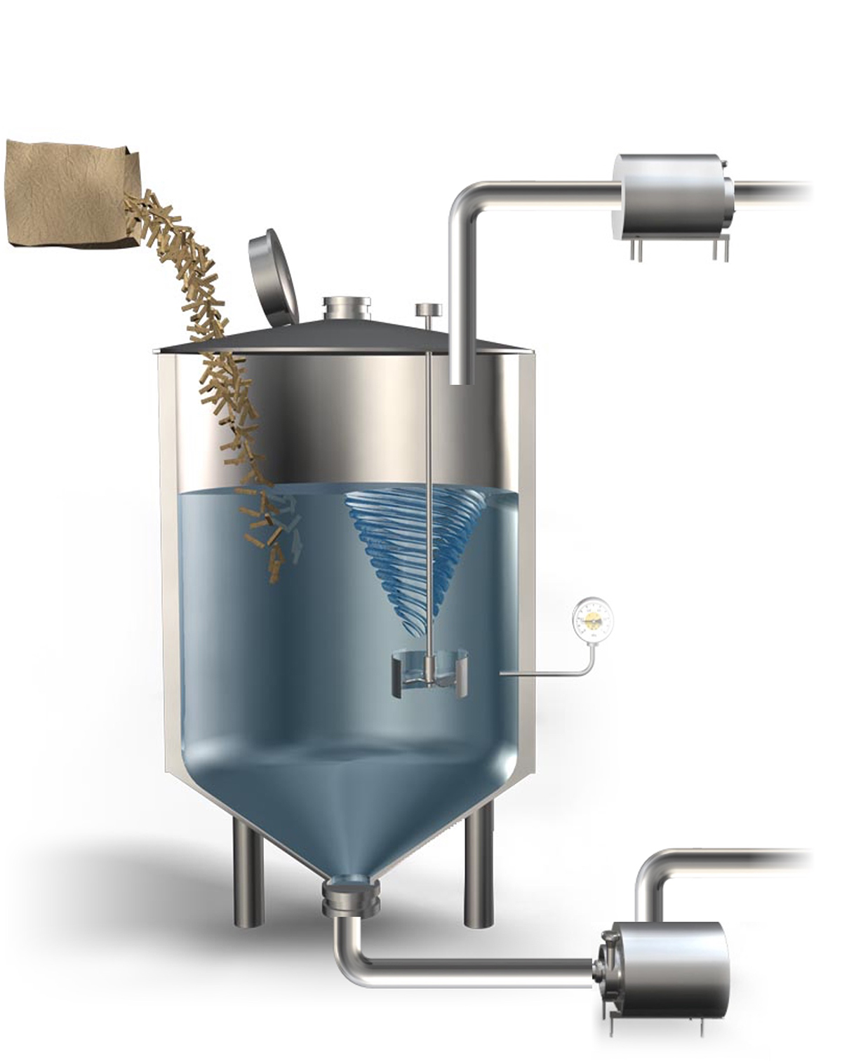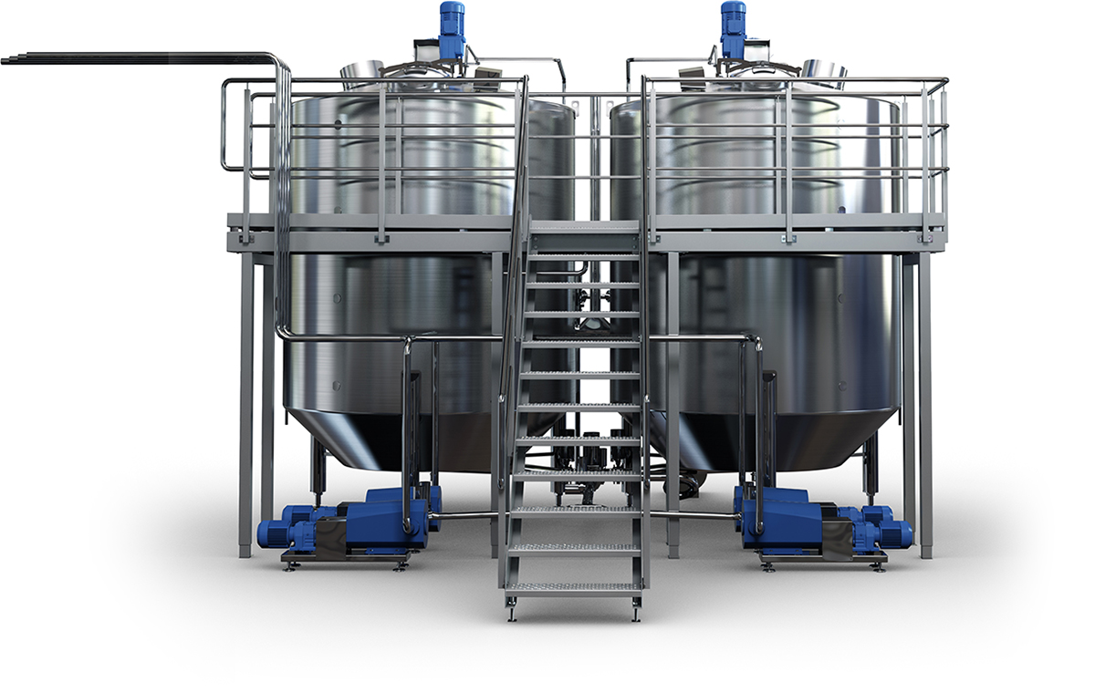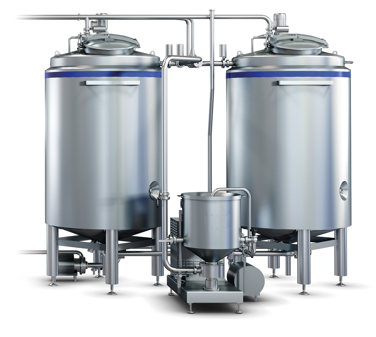 Batch mixing is based on a mixing tank that is often equipped with a liquid line for raw materials such as water, milk and cream. Liquid raw materials are usually heated to mixing temperature in a plate heat exchanger before entering the mixing tank.