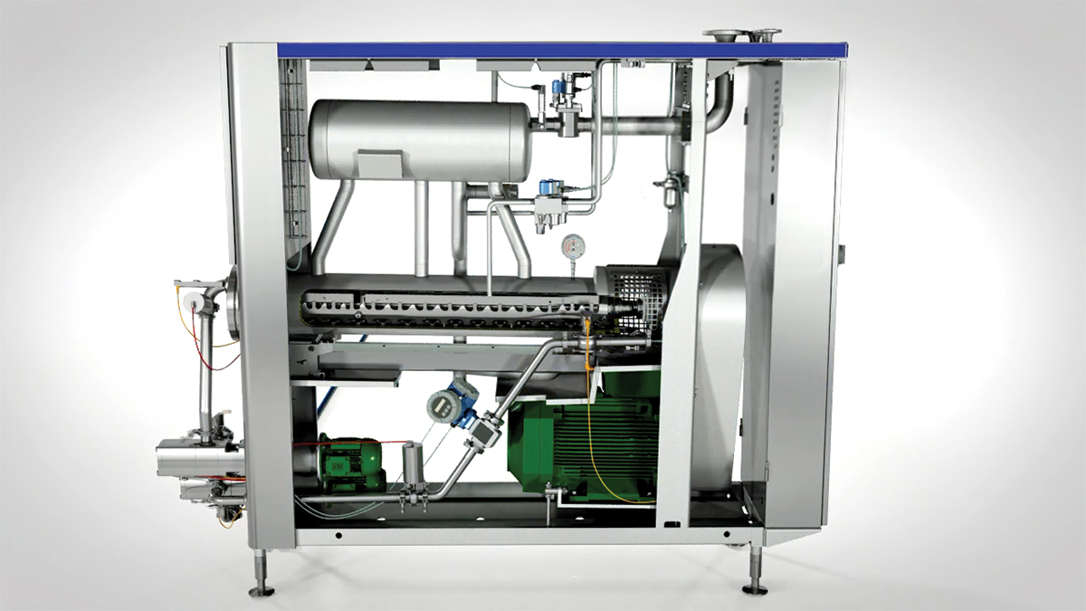 The dasher (stirring device) rotates around inside the cylinder, providing the mechanical shear. The nominal rotation speed is between 230 – 350 rpm and depends on the size of the continuous freezer but can be changed if the continuous freezer is equipped with a variable main motor speed to regulate the mechanical shear.