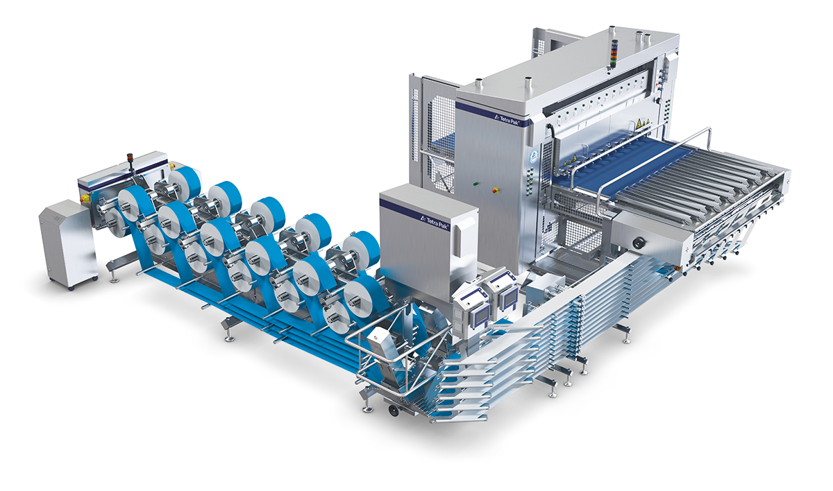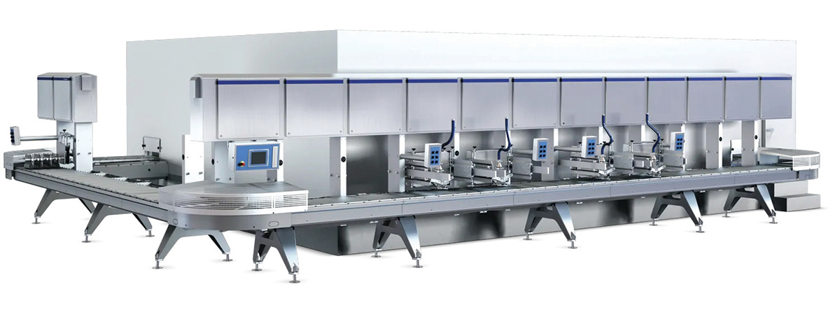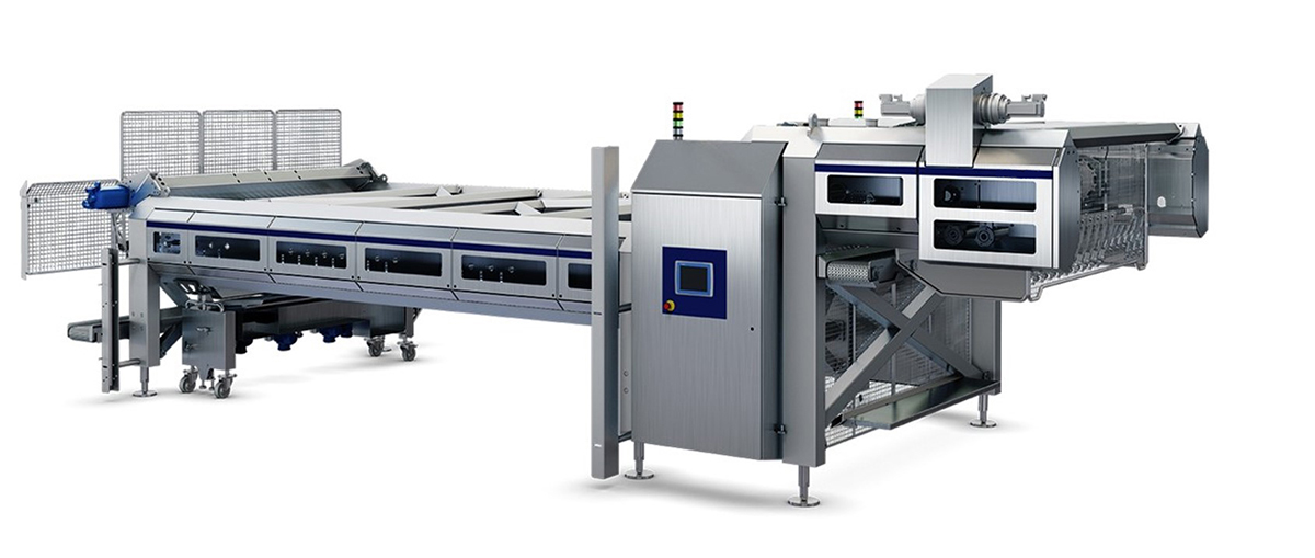 The extrusion process takes place on equipment where the products are placed on trays that are conveyed continuously throughout the process, so all operation units are synchronised with the movement of the trays.