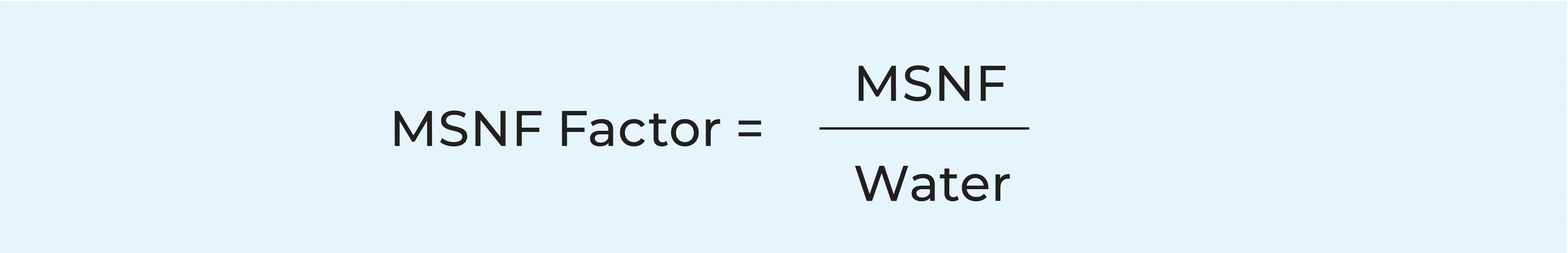 In the ice cream industry, it is generally accepted that this factor should be 17 in order to have a balanced ice cream mix. However, the MSNF factor is by definition independent of the MSNF type and composition, and in the case of non-traditional MSNF types, consideration should be given to calculating MSNF addition based on protein types and amounts.