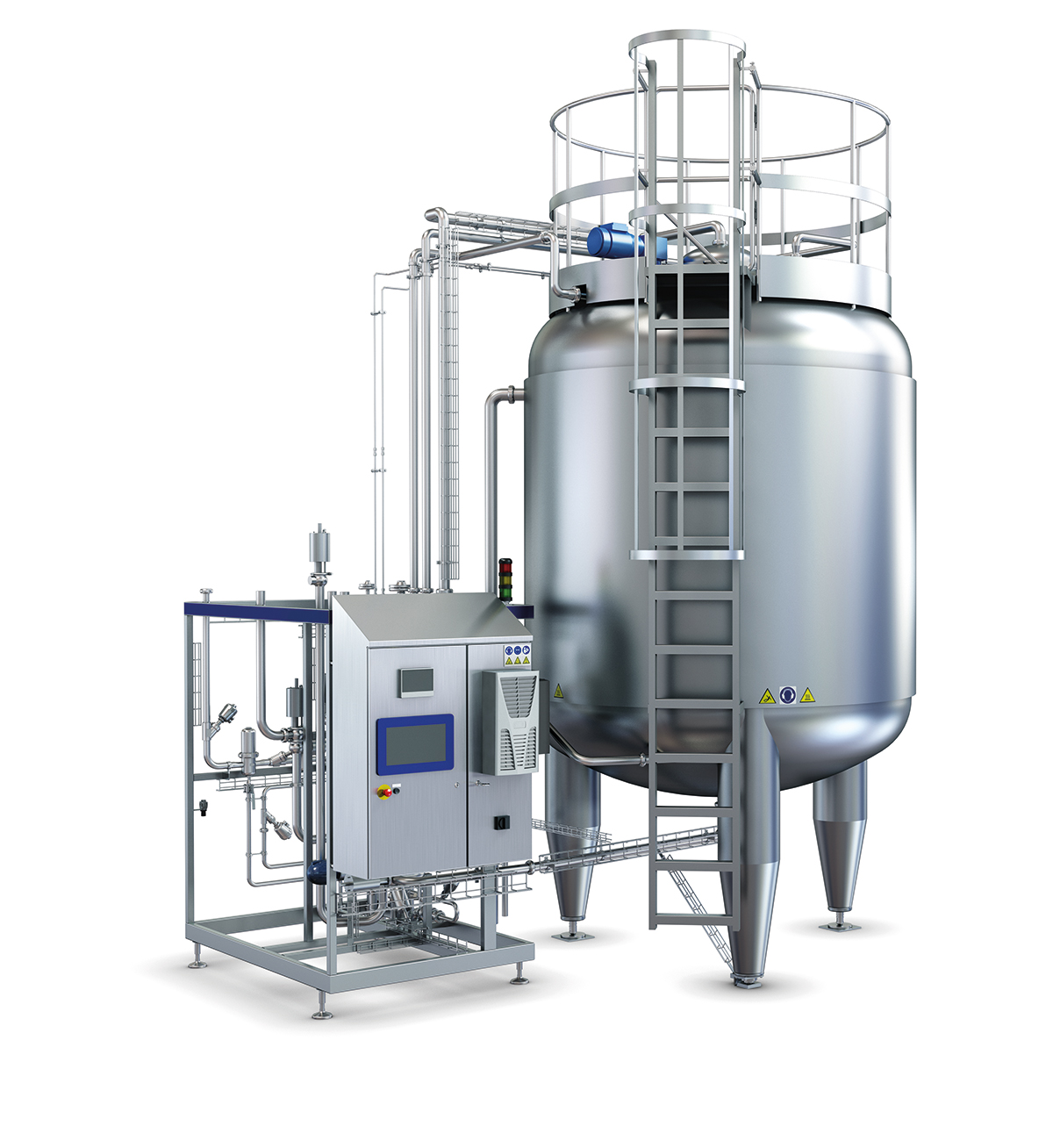 UHT plants are fully automatic and have four operating modes: plant pre-sterilisation (SIP), production, AIC (aseptic intermediate cleaning) and CIP (full cleaning in place). Safety aspects must be a prime consideration in the design of a UHT plant. The risk of supplying an unsterile product to the aseptic filling machine must be eliminated. Interlocks in the control programming provide security against operator errors and tampering with the process. It is, for example, impossible to start production if the plant is not properly pre-sterilised or if the system loses sterility during production. In such a case, this system automatically stops the production and has to be cleaned and sterilised.