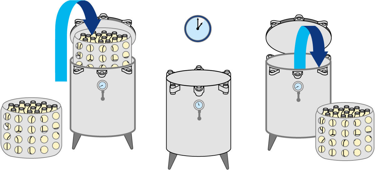 Each time a sterilisation process is performed, it can be characterised by a certain sterilising effect. In any heat sterilisation process, the sterilising effect is determined by the time/temperature condition applied. The higher the temperature or the longer the holding time, the more efficient the process, i.e. the greater the sterilising effect.
