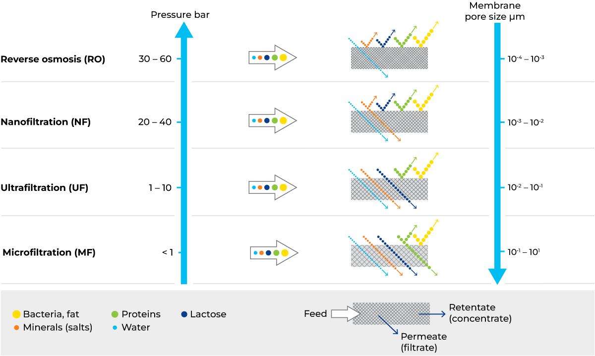 The membrane separation techniques utilised in the dairy industry serve different purposes (Figure 7.4.3):