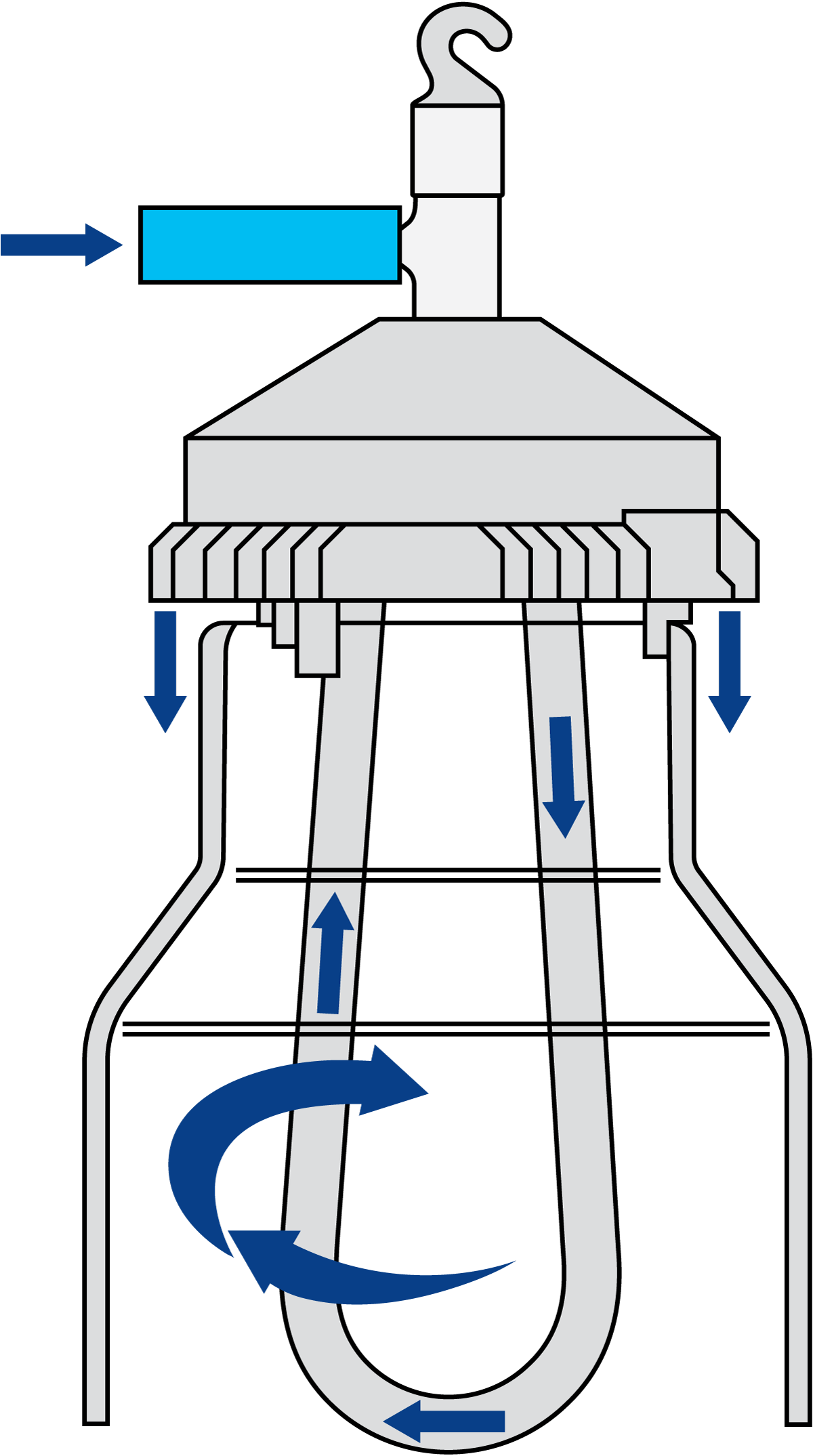 Milk leaves the udder at a temperature of around 37 °C. Fresh milk from a healthy cow's udder contains only normal microbial flora, and it must be protected from being contaminated after it has left the udder. Microorganisms capable of spoiling the milk are everywhere – on the udder, on the milkers’ hands, on airborne dust particles and water droplets, on straw and chaff, on the cow’s hair and in the soil. It is common to filter the milk before it enters the milk tank. Efficient cooling of the raw milk after milking is the best way to prevent bacterial growth (Figure 1.9). Various cooling systems are available; the choice depends on the produced volume of milk. An in-can cooler, shown in Figure 1.10, is suitable for small producers. It is much favoured by users of chilled water units and producers using direct-to-can milking equipment. An immersion cooler is designed for direct cooling of the milk in churns as well as in tanks.