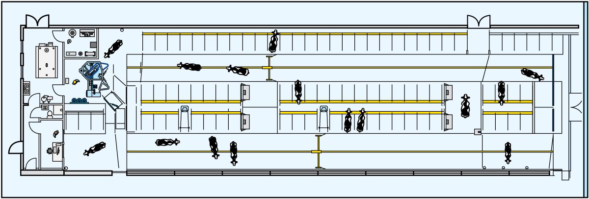Milking is one of the most labour-intensive and time-consuming jobs in dairy farming. In addition, milking has to take place at least twice a day all year around. Automated milking systems (Figure 1.6) are one solution to this problem as they offer dairy farmers reduced labour requirements, higher milk quality, improved animal health and increased yield. In contrast to conventional milking, in which people bring the cows to be milked, automatic milking places emphasis on the cow’s inclination to be milked in a self-service manner several times a day. Figure 1.8 shows a typical dairy farm layout including an automatic milking system.