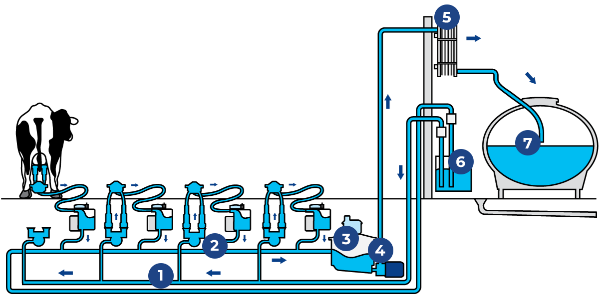 Regardless of whether the milking system is of bucket, pipeline, parlour, rotary, or automatic type, it is important that it is designed to prevent air admission during milking. Excessive air leakage can affect the quality of the milk and cause elevated levels of free fatty acids. The machine milking plant also includes cleaning-in-place facilities.