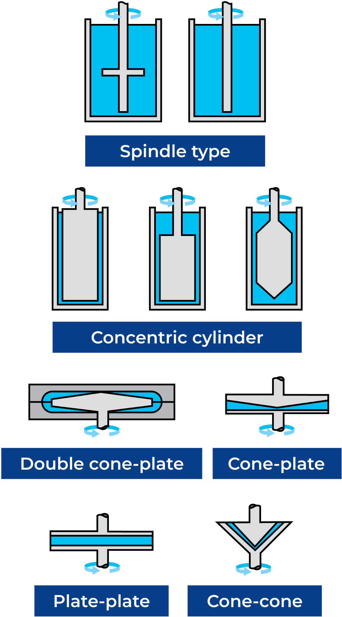 So, to ensure consistent, comparable and absolute viscosity results (which can be used for process design), one should use DIN systems. Some examples of absolute measuring geometries include concentric cylinder (CC), cone-and-plate (CP), and parallel-plate (PP). These geometries allow the calculation of absolute viscosity values independently of the specific measuring geometry used.
