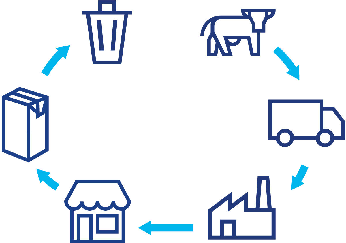 • Transportation of milk from farm to dairy, which often involves long distances at chilled distribution and significant volumes of fossil fuel.
