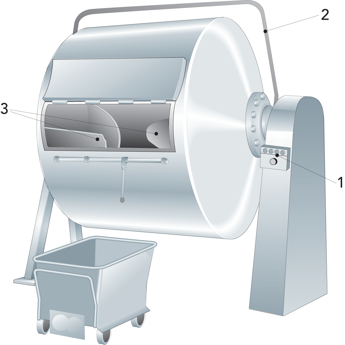 - Das Produkt kommt in einen Silotank mit untenliegender Förderschnecke. Die Schnecke transportiert das Produkt zur Abpackmaschine.