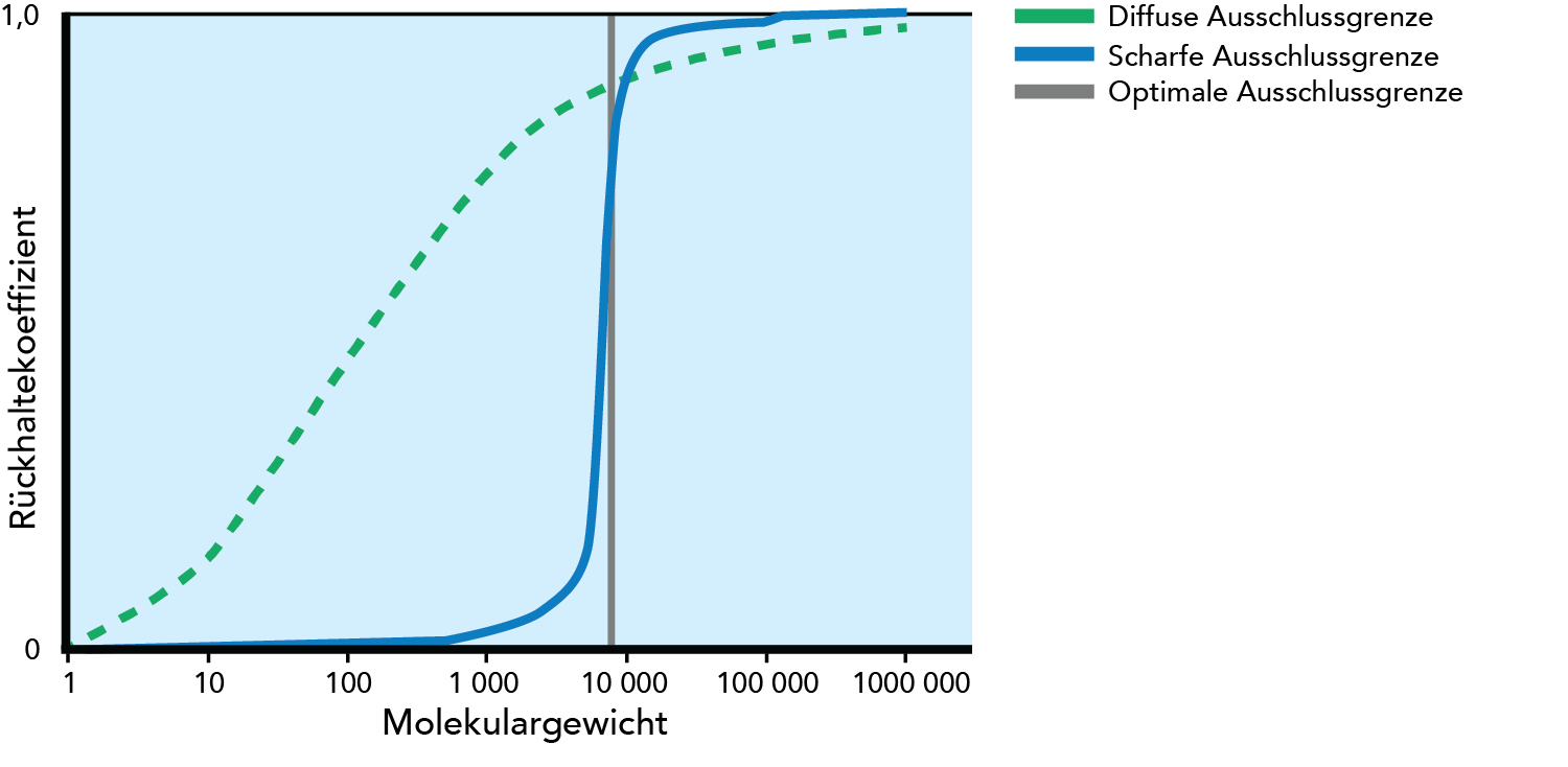 Die Aussage, dass allein die Molekulargewichtsausschlussgrenze die Trenneigenschaften bestimmt, sollte jedoch unter Vorbehalt erfolgen, da diese auch durch die Form der abgetrennten Moleküle beeinflusst werden. Ein optimal hartes, kugelförmiges Molekül kann nicht mit einem flexiblen oder geformten Molekül verglichen werden.