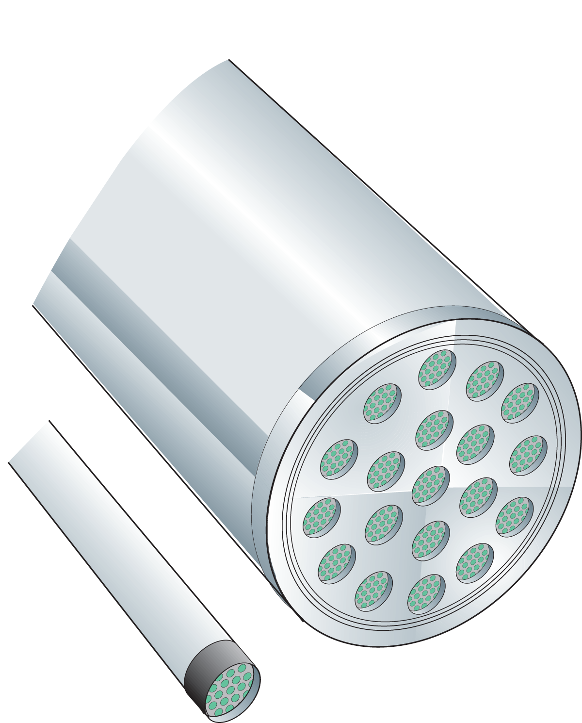 Mehrere Elemente – in der Regel bis zu sechs – können in ein und demselben Edelstahlrohr in Serie geschaltet werden, wie Abb. 6.4.12 zeigt.