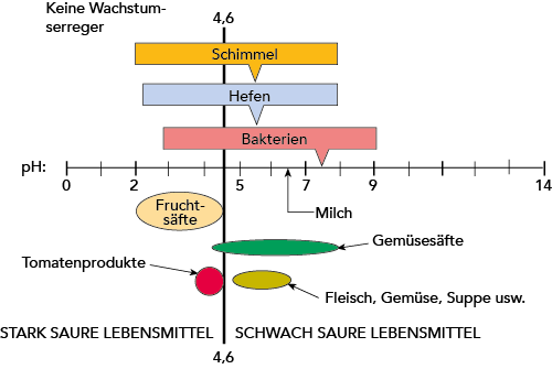 - Lebensmittelverderbende Organismen, speziell in sehr sauren Produkten
