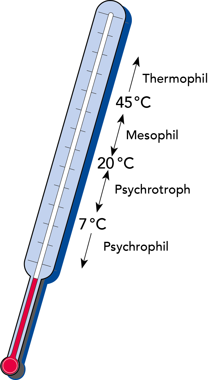 Schimmel können in einem Medium mit pH-Werten von 3 bis 8,5 wachsen. Viele Arten bevorzugen jedoch eine saure Umgebung, z. B. Käse, Joghurt, Zitrusfrüchte und Fruchtsäfte.