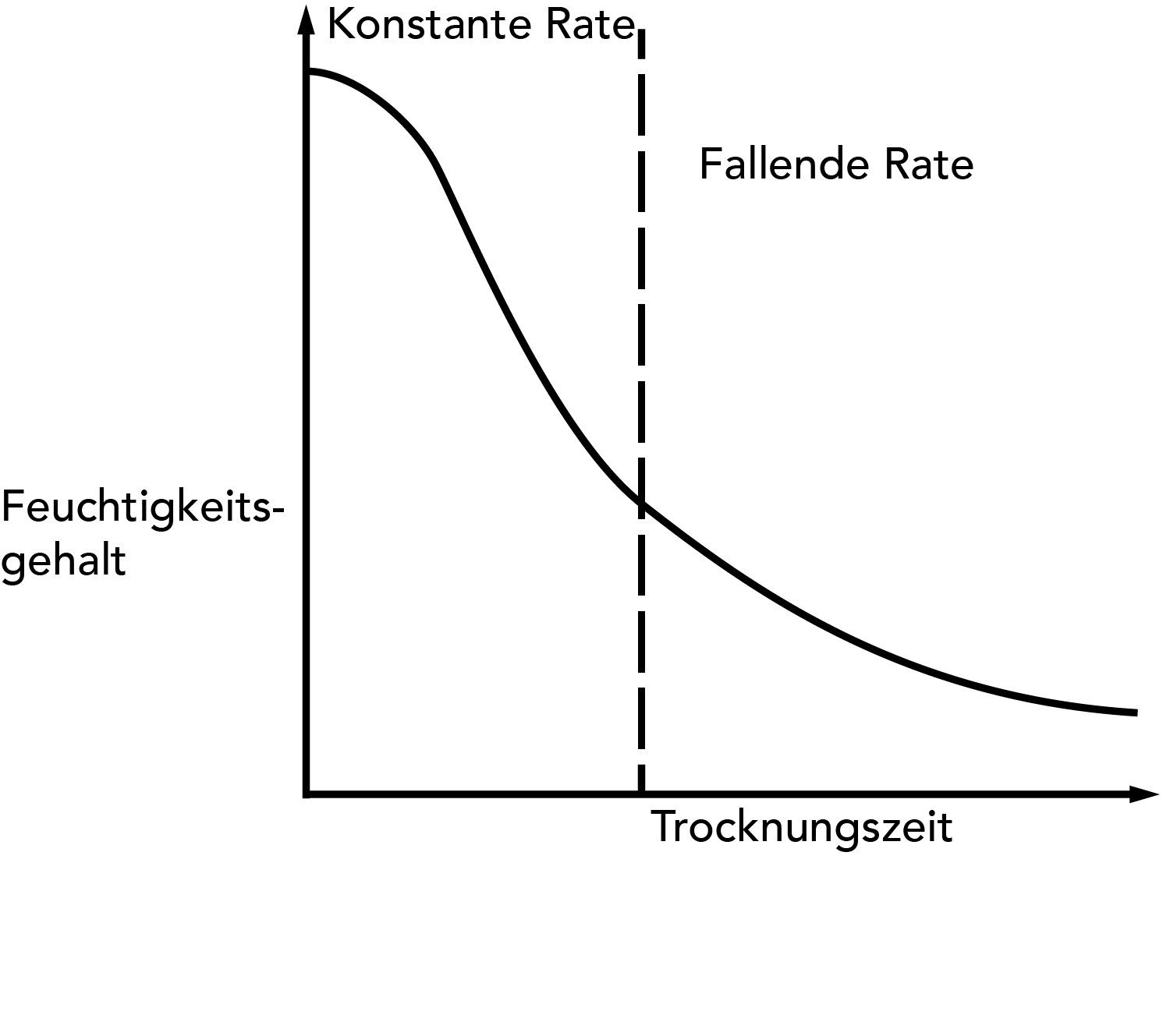 In der Phase der fallenden Trockenrate hängt diese vor allem von der chemischen Zusammensetzung sowie der physischen Struktur des Produkts ab. Die Temperatur der Trocknerluft ist in dieser Phase ebenfalls wichtig, da die Heißluft die Feuchtigkeit innerhalb des Produkts in Richtung der Oberfläche transportiert.