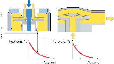 - durch Kombination beider Systeme (Kaskadenregelung) eine schnelle Rückkehr zum vorgegebenen Fettgehalt erfolgt.