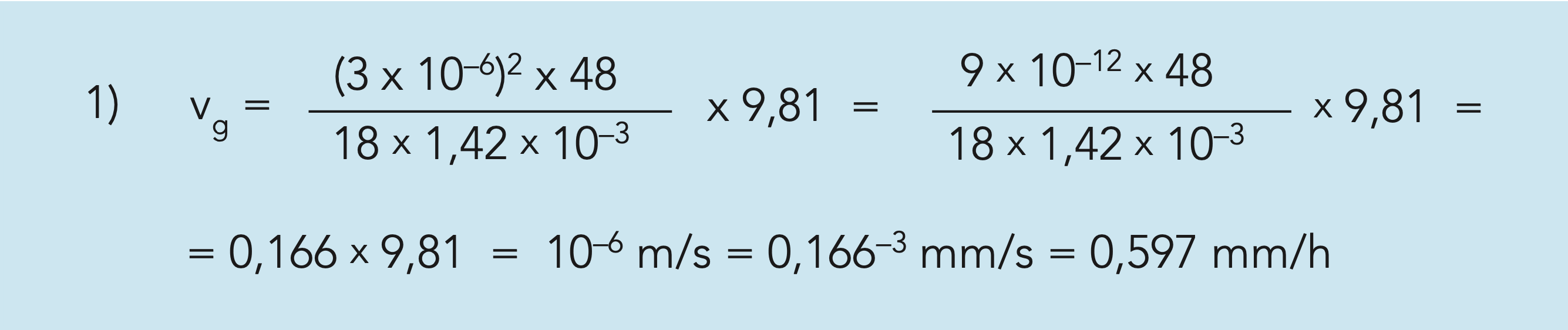 Die Sedimentationsgeschwindigkeit (v) beträgt dann: