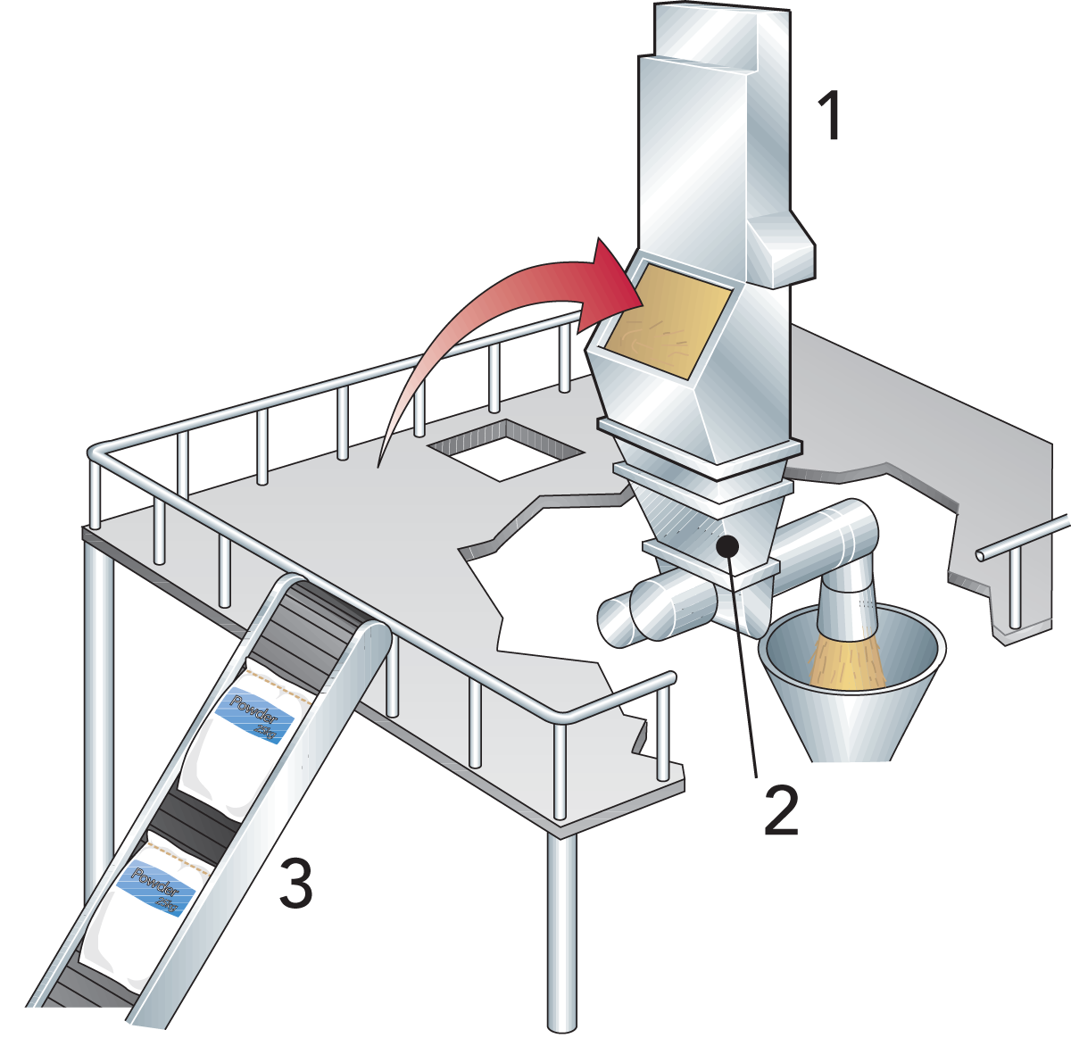 Beim Umgang mit Milchpulver fallen große Mengen an Staub an. Sackentleerungen im großen Stil erfordern daher spezielle Staubabsaugungseinheiten (vgl. Abb. 18.1).