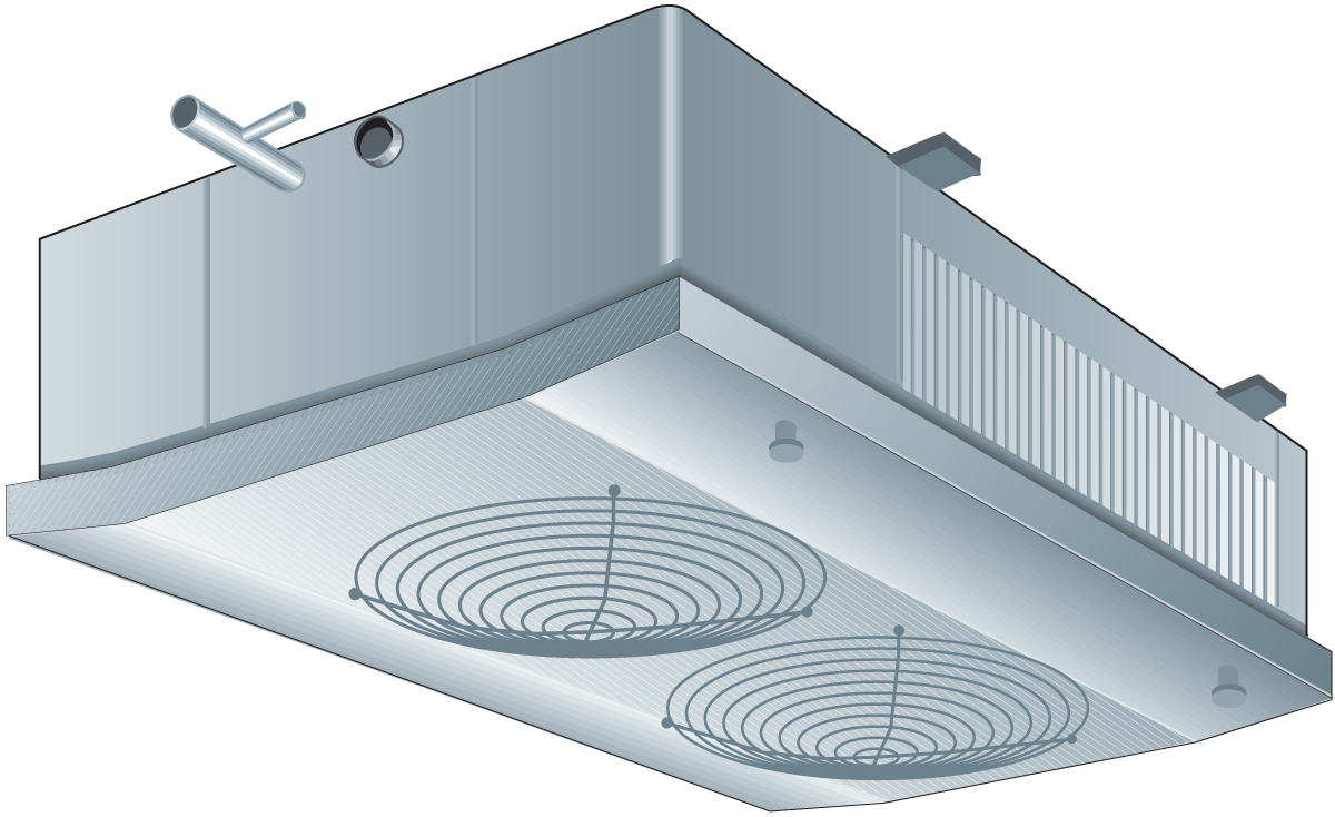 Bei Luftzirkulationsverdampfern (Abb. 6.11.10) wird Luft beim Durchströmen eines Bündels von Rohren gekühlt, die zum Maximieren der wärmeübertragenden Oberfläche mit Rippen versehen sind. Das in den Rohren zirkulierende Kältemittel nimmt Wärme aus der Luft auf und verdampft dabei. Luftzirkulationsverdampfer werden zur Kühlung von Lagerhäusern und zum Kühlen der Luft in Luftkonditionierungsanlagen benutzt.