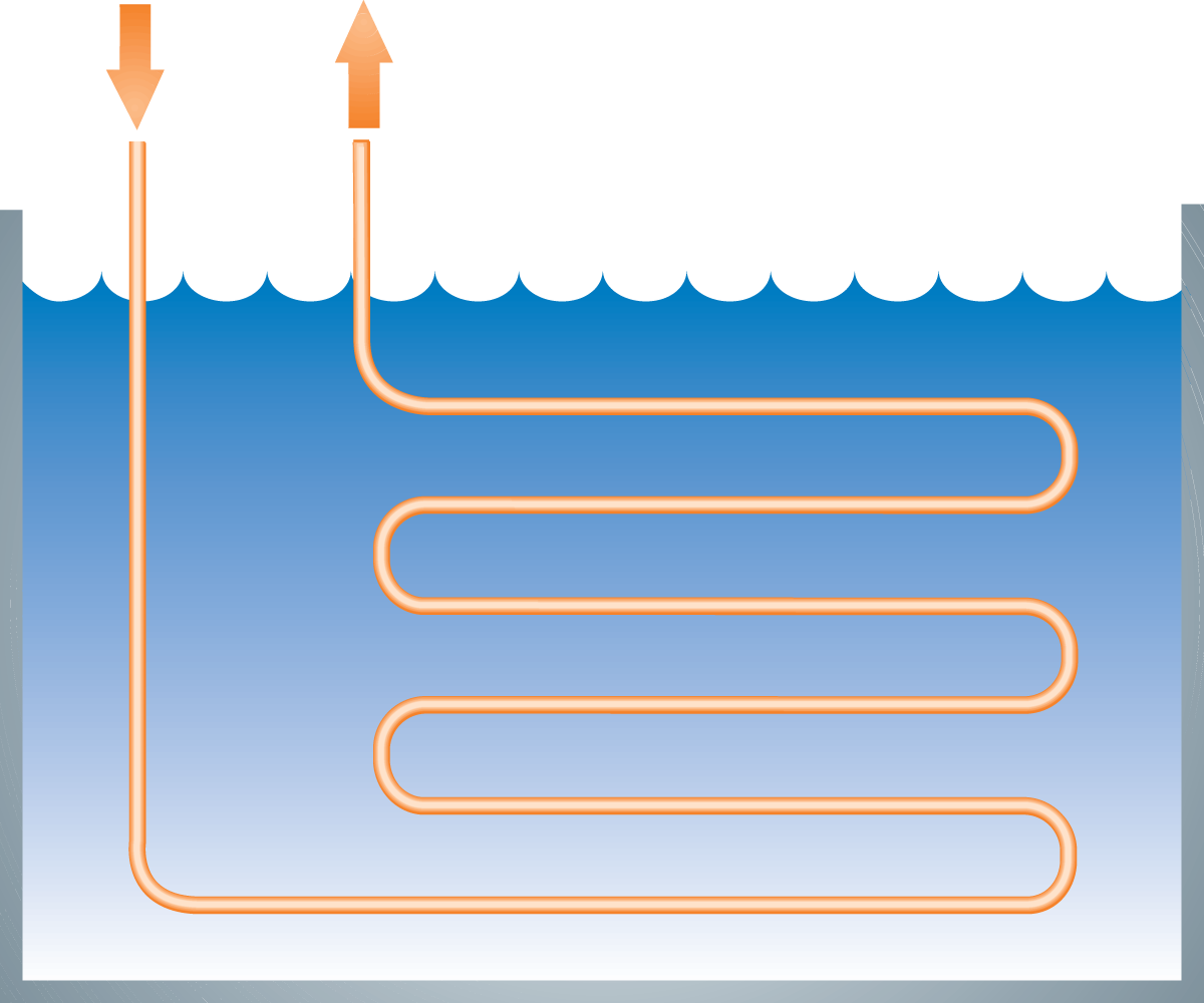 In Molkereien wird zumeist Eiswasser als Kühlwasser verwendet. Wasser wird in einem Eiswassertank abgekühlt, in dem sich an den Verdampferschlangen Eis bildet.