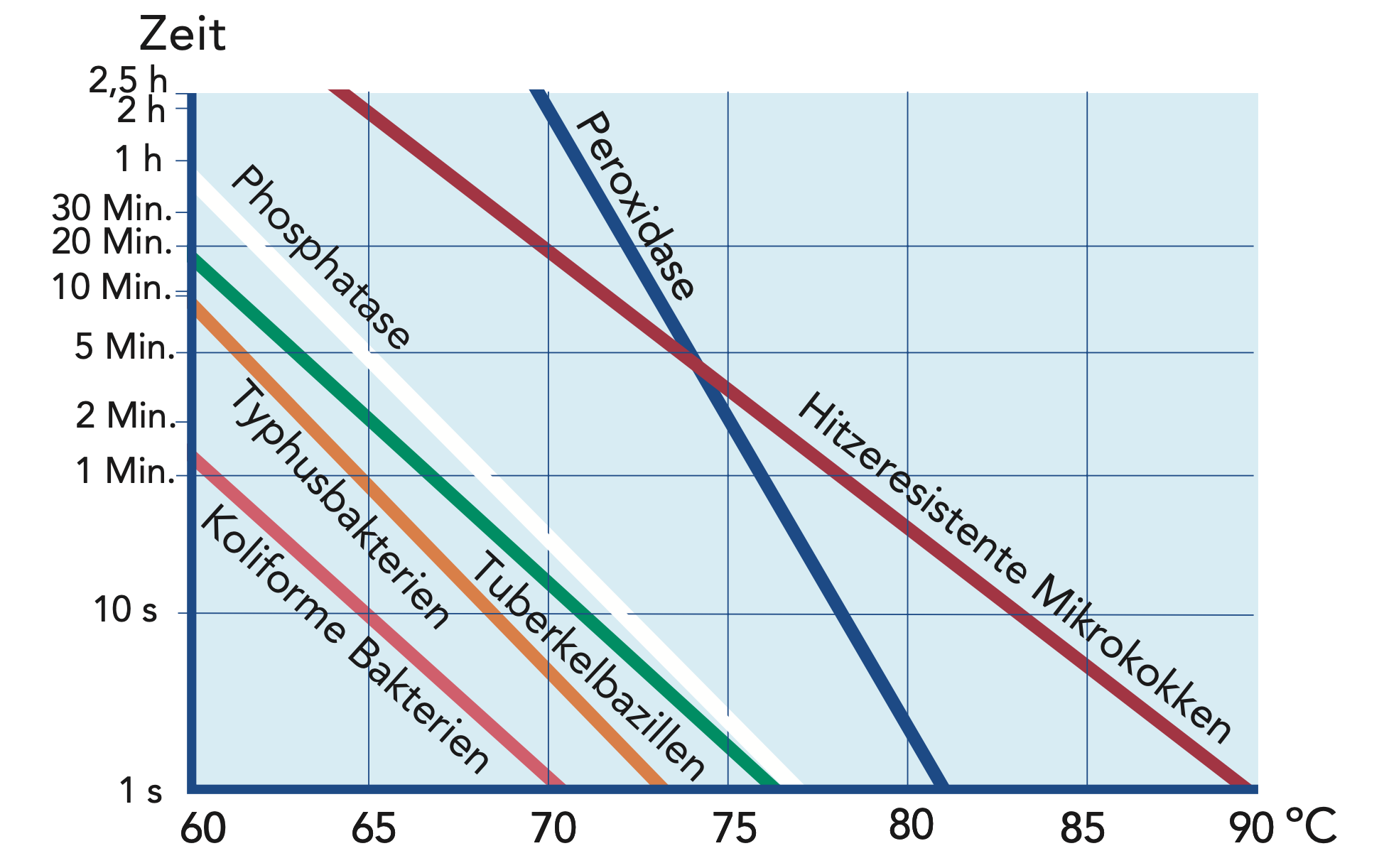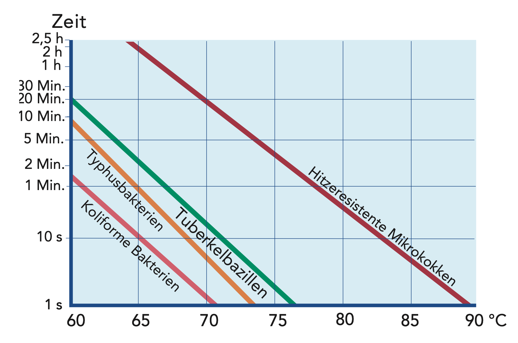 Tuberkelbazillen sind widerstandsfähiger gegen eine Erhitzung als coliforme Bakterien. Eine Heißhaltezeit von 20 Sekunden bei 70 °C oder 2 Minuten bei 65 °C ist erforderlich, um sicherzustellen, dass alle Tuberkelbazillen abgetötet sind. Daneben treten in Milch möglicherweise auch hitzeresistente Mikrokokken auf, die aber im Allgemeinen als harmlos erachtet werden.