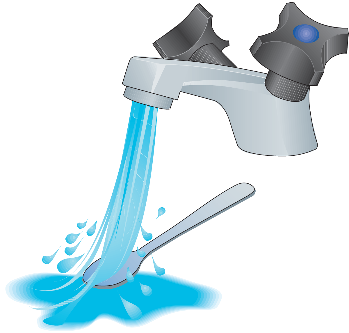 Hier geht Wärme in den Löffelstiel über, sodass dieser sich erwärmt. - Konvektion ist eine Form der Wärmeübertragung, bei der sich Teilchen mit hohem Wärmeinhalt mit kalten Teilchen mischen und Wärme dann durch Leitung ausgetauscht wird (Abb. 6.1.4). Konvektion erfordert zwangsläufig ein Vermischen. Wird der Teelöffel mit fließendem kalten Wasser abgespült, geht die Wärme vom Löffel auf das Wasser über, das sich dadurch erwärmt. Das erwärmte Wasser wird fortlaufend durch kaltes Wasser ersetzt, das erneut Wärme aus dem Löffel aufnimmt. Die Wärmeübertragung durch Konvektion geht so lange weiter, bis der Löffel und das fließende Wasser die gleiche Temperatur haben.