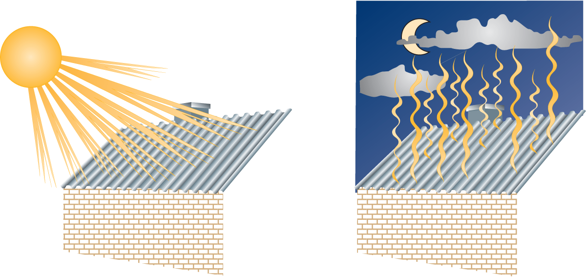 - Strahlung ist die Freisetzung von Wärme aus einem Körper, der thermische Energie gespeichert hat (Abb. 6.1.5). Die Wärmeenergie wird in Strahlungsenergie umgesetzt, die der Körper abgibt und die andere Körper aufnehmen.