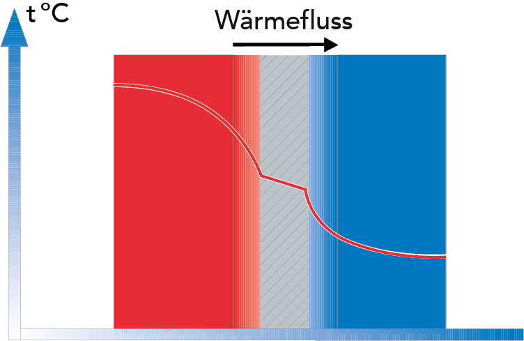 Daher hat das Heißwasser in der Mitte des Strömungskanals seine höchste Temperatur. Je näher sich das Wasser an der Platte befindet, desto mehr wird es durch die kalte Milch auf der anderen Seite gekühlt. Wärme tritt durch Konvektion und Konduktion in die Grenzschicht über. Die Wärmeübertragung durch die Wand erfolgt ausschließlich durch Konduktion, während die weitere Wärmeübertragung in die Milch bis in die Mitte des Strömungskanals wieder konvektiv und konduktiv ist.