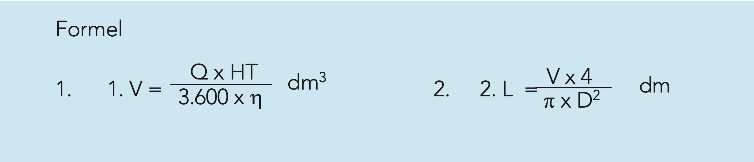 Beispiel: Eine Heißhaltezeit (HZ) von 15 Sekunden ist für eine Pasteurisierungsanlage mit einer Kapazität (Q) von 10.000 l/h erforderlich. Der Innendurchmesser (D) des verwendeten Rohrs beträgt 48,5 mm = 0,485 dm und der Wirkungsgrad des Heißhalters wird mit 0,85 angesetzt.