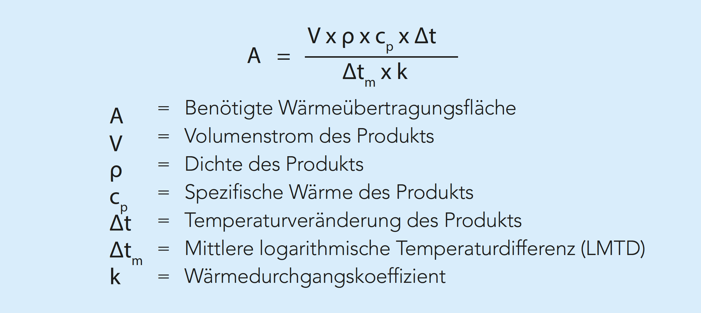Die Durchflussmenge V wird von der geplanten Produktionsleistung der Molkerei bestimmt. Je größer die Produktleistung, desto größere Erhitzer werden benötigt.