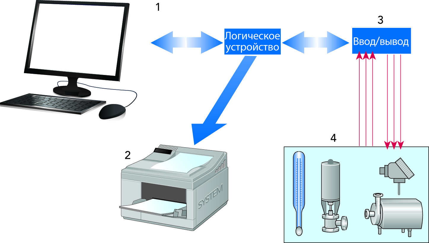 - управление процессом, обычно PLC (программируемый логический контроллер), осуществляющий текущее управление процессом;