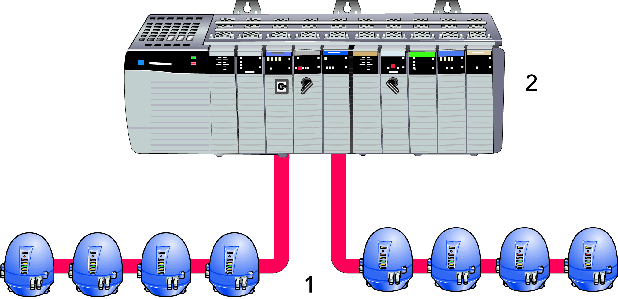 Алгоритм управления хранится в виде программы в особом устройстве управления процессом, которым обычно является PLC.