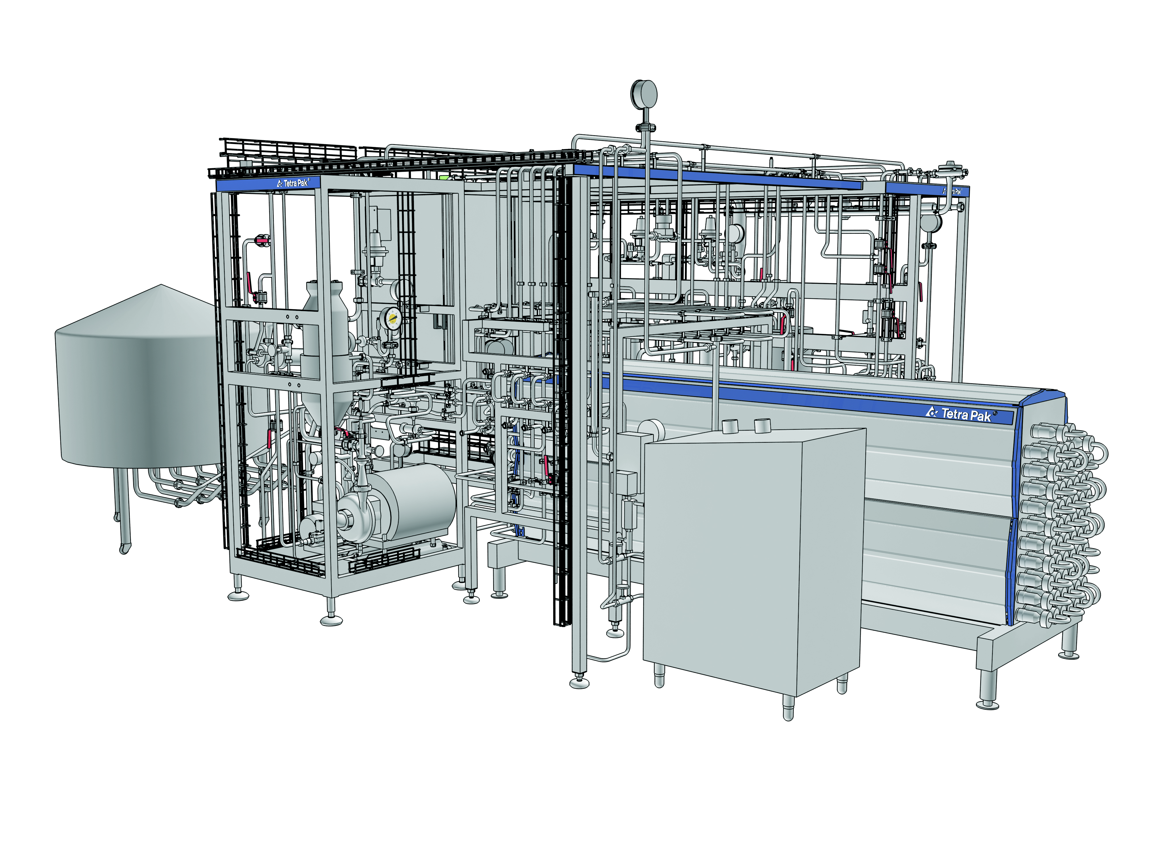 И наконец, охлажденный продукт закачивается в асептический буферный танк (не показан), который обеспечивает буферный объем между линией непрерывного процесса и упаковочной системой.