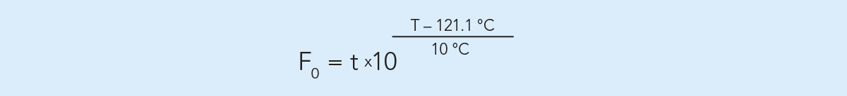 F0 = 1 после нагрева продукта при температуре 121,1 °C в течение одной минуты.