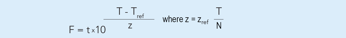 t = время стерилизации, чаще всего выражаемое в минутах, т. е. время выдержки в секундах, разделенное на 60