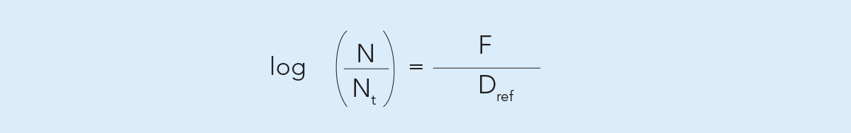 Летальное воздействие стерилизации на микроорганизмы можно выразить математически в виде логарифмической функции, представленной справа.