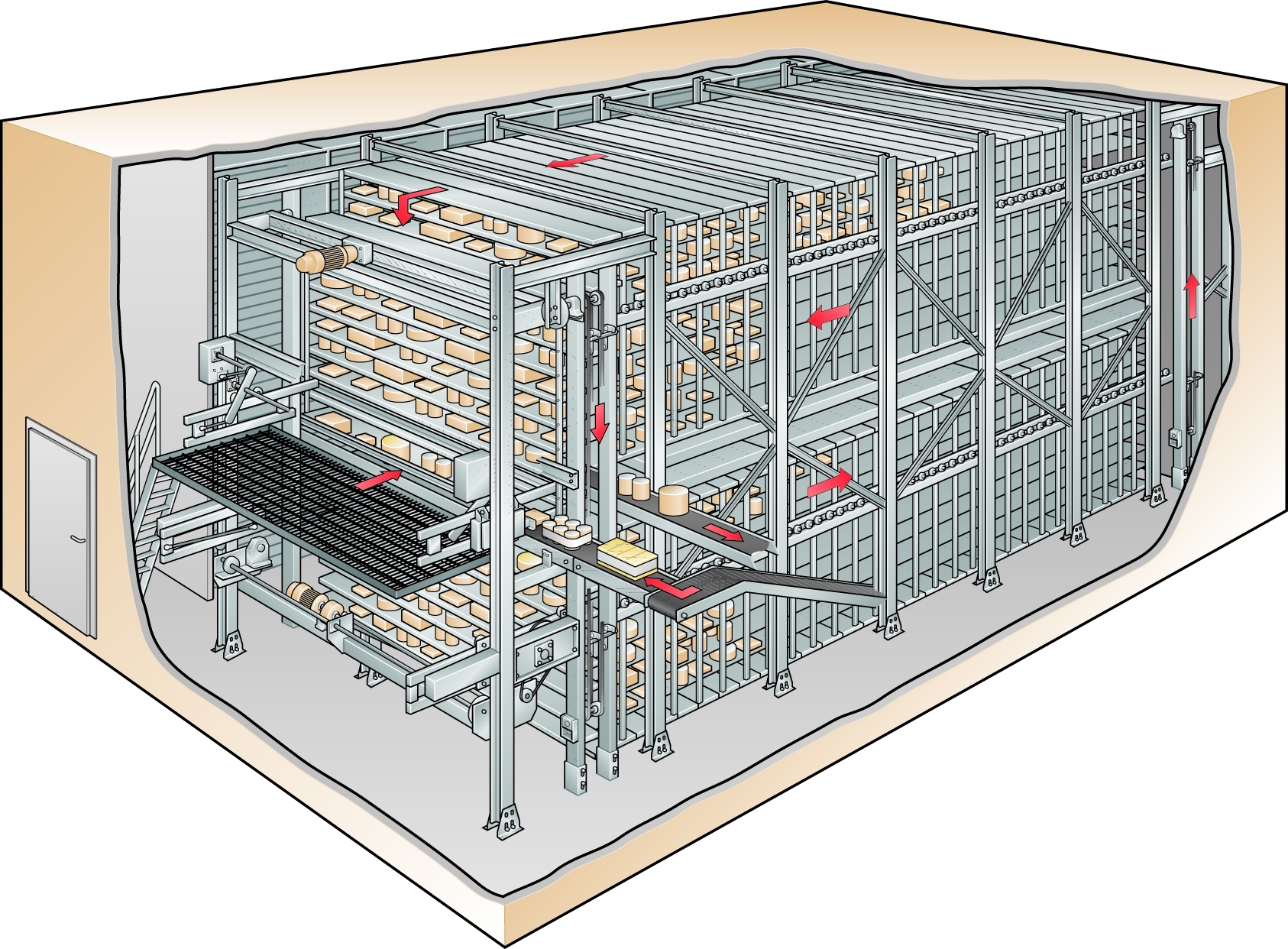 Жидкие продукты часто поступают в цистернах. Молочные продукты хранятся при температуре не выше 5 °С, а сгущенное молоко с сахаром, глюкоза и растительный жир должны храниться при относительно высокой температуре (30–50 °С), чтобы вязкость оставалась достаточно низкой для перекачивания. Молочный жир поставляется в форме обезвоженного молочного жира (ОМЖ) или блоков сливочного масла, которые плавятся и перекачиваются в резервуары для хранения, где должна поддерживаться температура 35–40 °С.