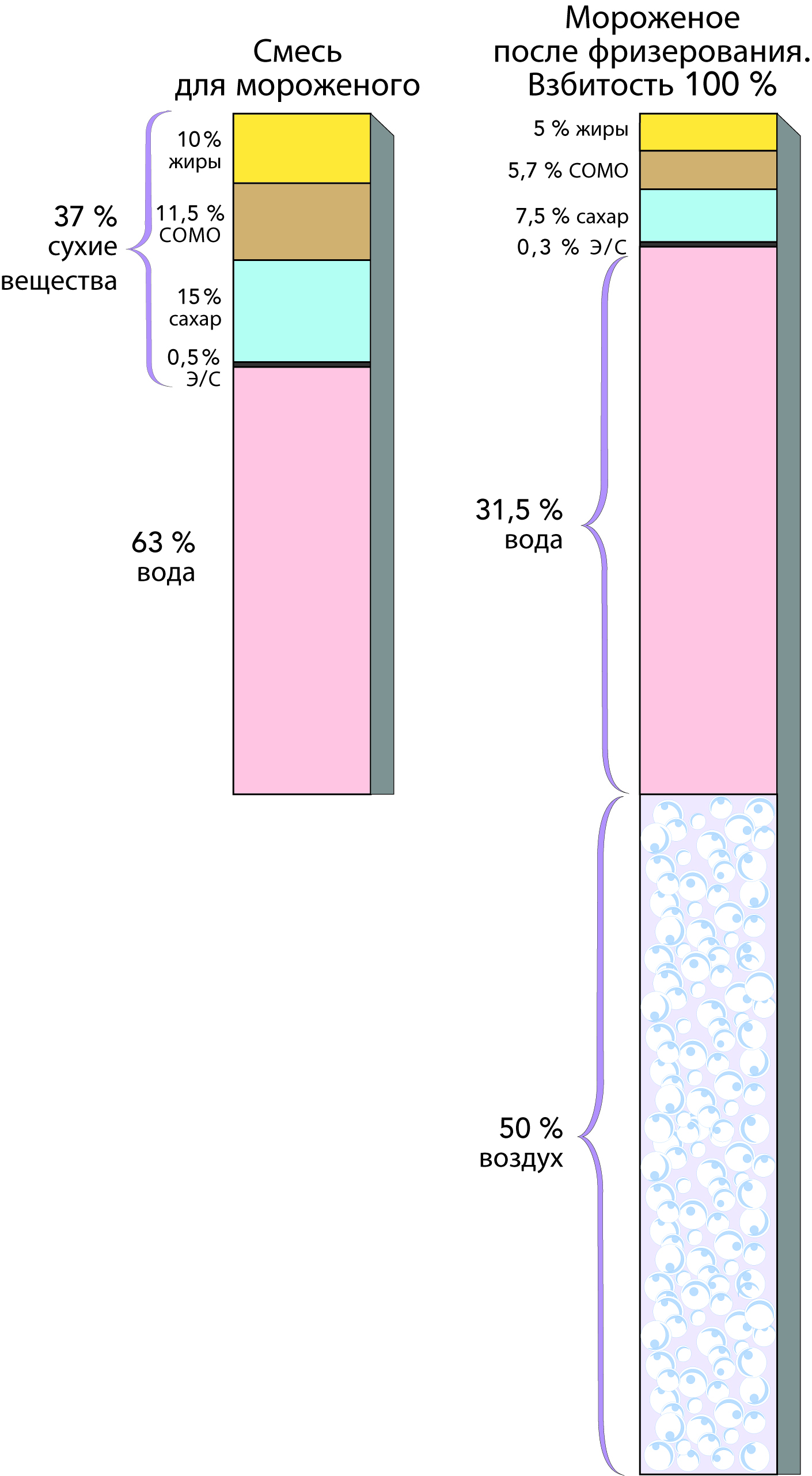 | Взбитость | Количество воздуха в продукте |