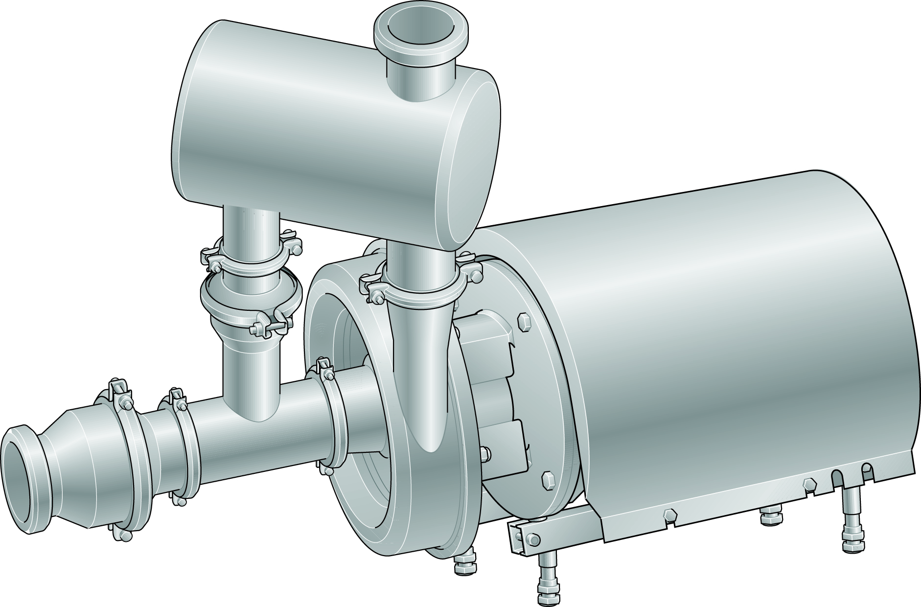 Самозаливной центробежный насос разработан специально для работы с аэрированными средами, например в системах циркуляции моющих средств безразборной мойки (CIP).