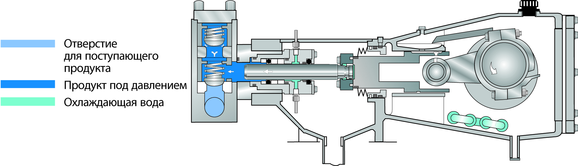 - создание водяного барьера для исключения контакта воздуха и продуктов во время перекачивания при очень низком давлении на входе, например из вакуумной камеры.