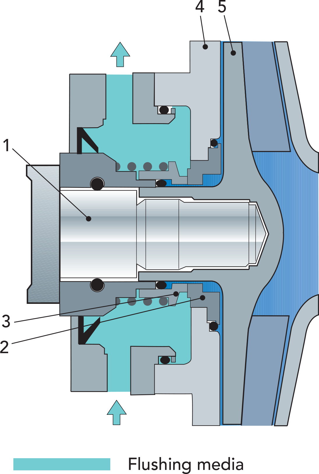 - в качестве барьера при промывке под высоким давлением (до 5 бар), если блок манжетного уплотнения не подходит.