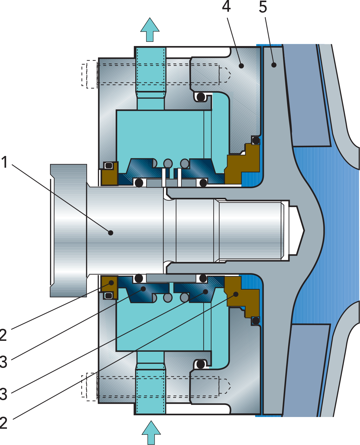 Большая часть насосов имеет внешнее уплотнение вала, так как это упрощает конструкцию и делает ее оптимальной с санитарной точки зрения. Внешнее уплотнение подходит для большинства применений.
