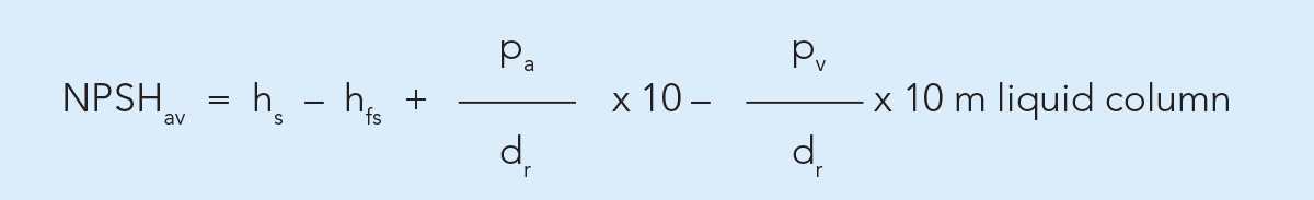 До того как это значение может быть использовано, необходимо рассчитать NPSH, существующее в линии всасывания в обычных условиях. Этот показатель, NPSHav, должен быть равным или выше, чем необходимое NPSH, указанное на графике.