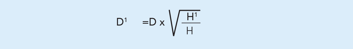 Уменьшив заводской диаметр рабочего колеса с D до D1, можно получить более низкую, по сравнению с максимальной, кривую насоса (см. рис. 6.7.13). Новый диаметр D1 можно приблизительно определить, проведя прямую линию на диаграмме рабочих характеристик насоса от точки 0 через А к стандартной кривой В рабочего колеса D. Зафиксируйте давление Н и необходимое новое давление Н1. Новый диаметр рабочего колеса D1 рассчитывается по формуле: